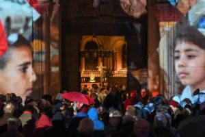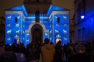 Dans lLumières d'oriente cadre du jumelage de Lyon avec Mossoul et pour célébrer la Chandeleur, les 2 et 3 février, un spectacle son et lumière réalisé par Cor quo Vado – Agnès Winter a présenté 3 000 ans d’histoire de la Mésopotamie. Cette projection, initialement prévue pour le 8 décembre 2015 dans le cadre de la fête des lumières, nous a permis de marquer de nouveau notre engagement et notre amitié auprès des populations déplacées de la plaine de Ninive en Irak.
